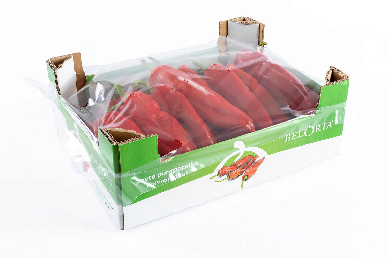 PAPRIKAPUNTPAPRIKAsmalle langwerpige vruchten egaal rode kleur zoete smaak BESCHIKBAARHEIDVan april tot september ORIGINEBE / ES / NL THE TASTE OF BELGIUM'S FINEST PAPRIKA GROEN PAPRIKA ROOD PAPRIKA GEEL PAPRIKA ORANJE PAPRIKA MIX MINI PAPRIKA MIX PUNTPAPRIKA VERKRIJGBARE VERPAKKINGEN BELORTA 2,5 KG BELORTA 4 KG